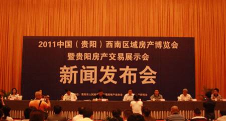 5月18日,2011中國(貴陽)西南區域房產博覽會暨貴陽房產交易展示會新聞發布會在金陽世紀金源大酒店隆重召開,本屆房博會由貴陽市人民政府、中國房地產業協會、中國房地產研究會共同主辦,貴陽市住房和城鄉建設局、貴陽市旅游產業發展委員會、貴陽市金陽新區管委會、貴陽市會展經濟促進辦公室聯合協辦,貴陽市房地產業協會、貴州大地融合展覽工程有限公司聯合承辦,貴州山水神韻廣告公司特別承辦。主辦方領導、國內及貴陽的各大媒體、參展房開企業代表出席了本次新聞發布會。